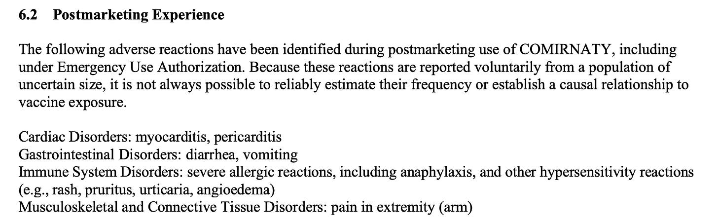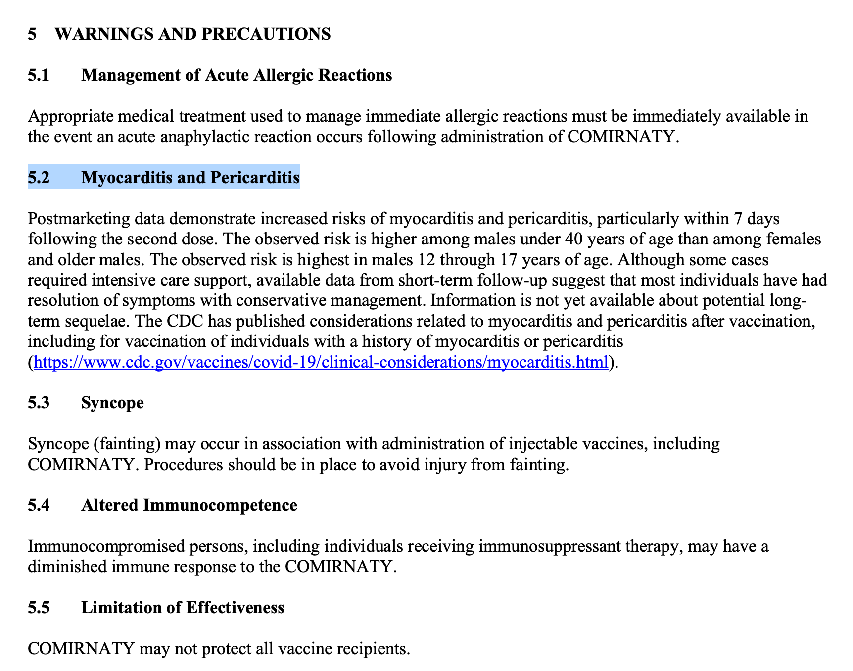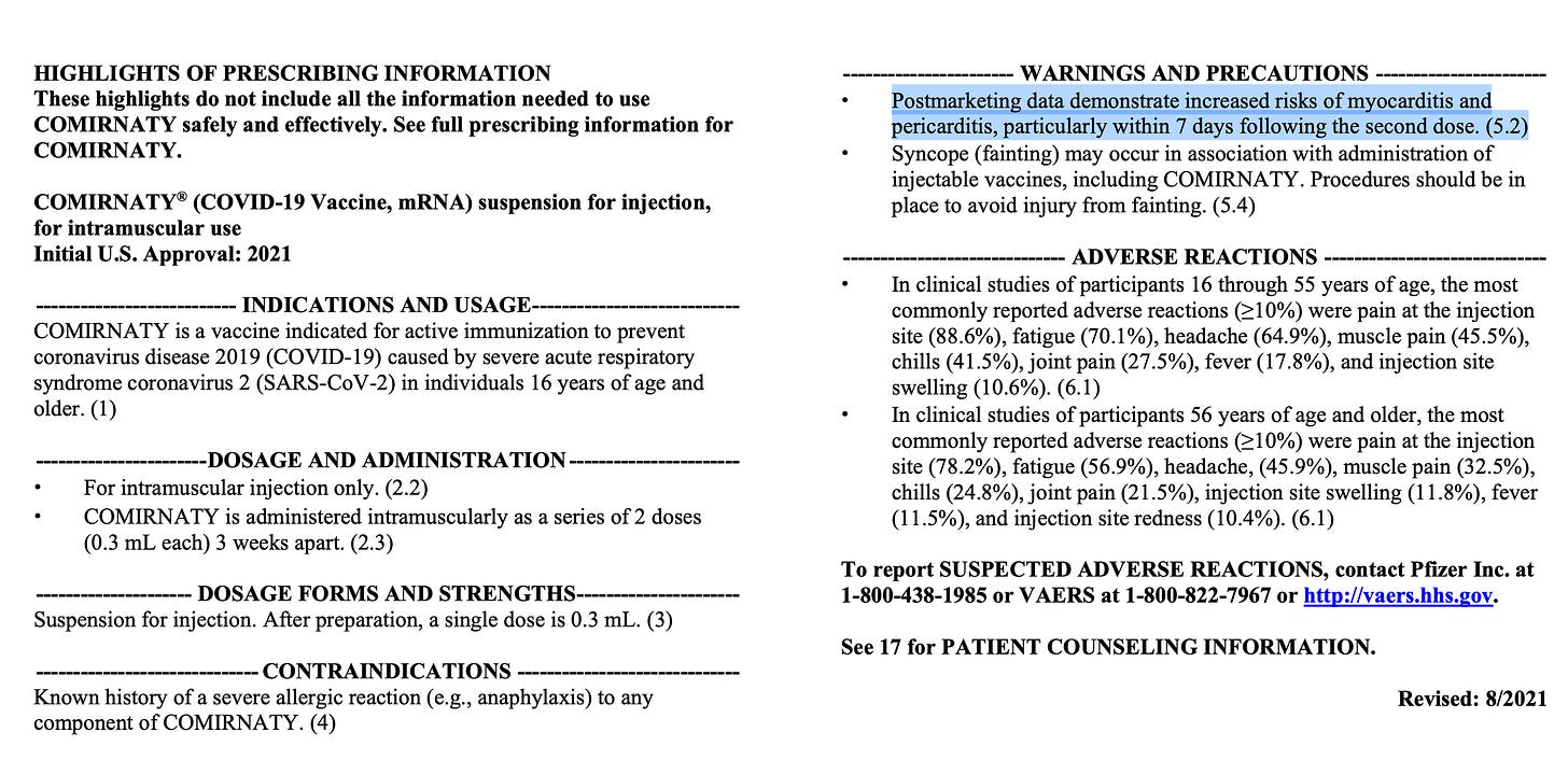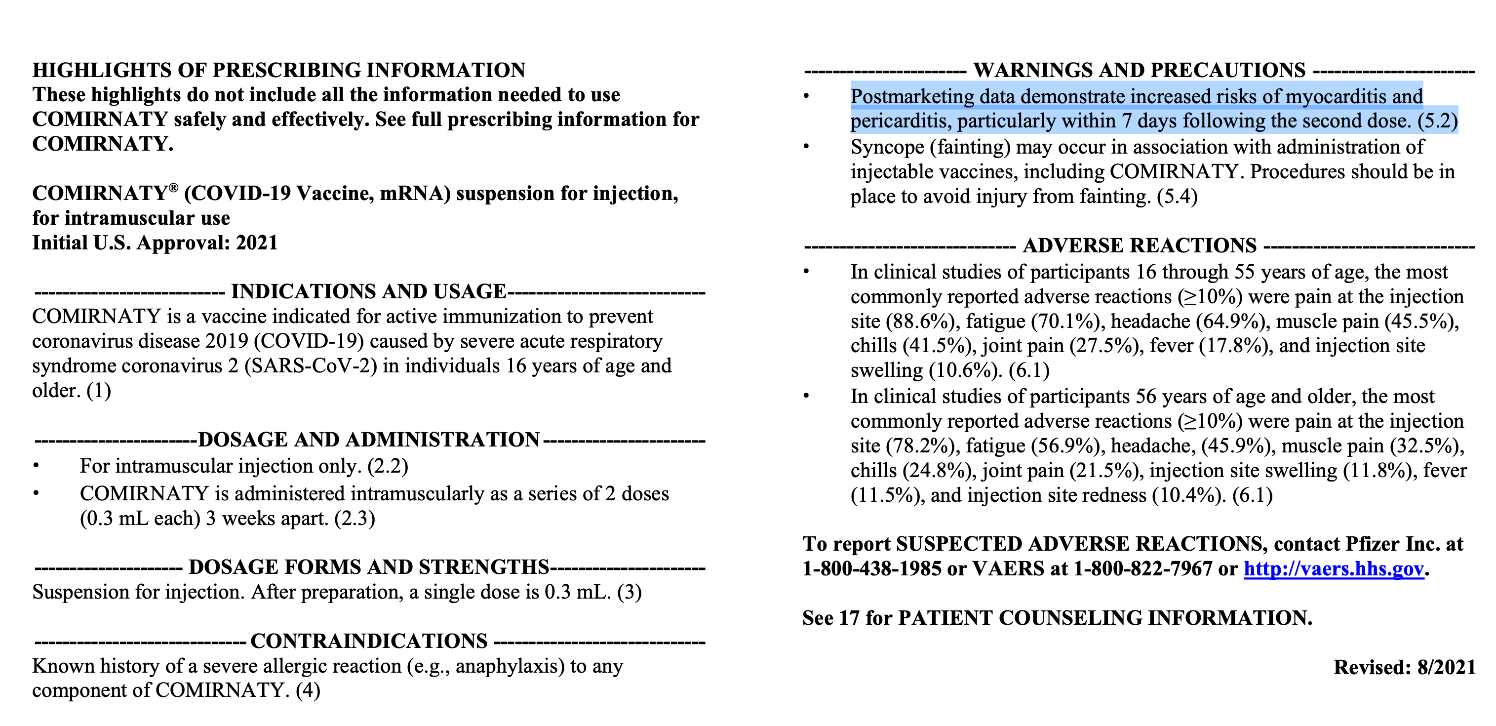 Postmarketing data demonstrate increased risks of myocarditis and pericarditis, particularly within 7 days following the second dose.