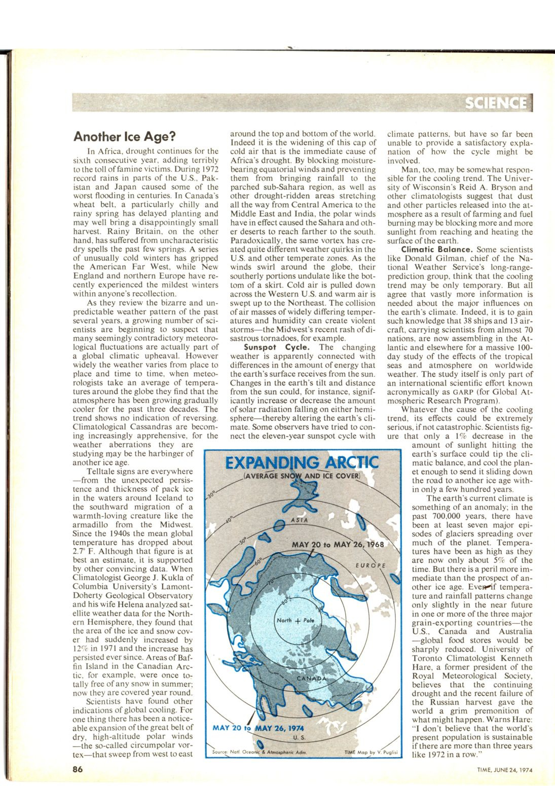 Time Magazine: Another Ice Age? Monday, June 24, 1974