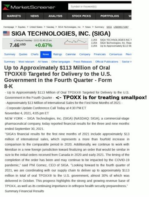 Up to Approximately $113 Million of Oral TPOXX Targeted for Delivery to the U.S. Government in the Fourth Quarter - Form 8-K