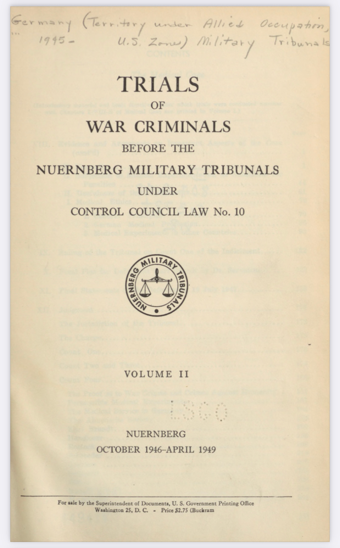 "Trials of War Criminals before the Nuremberg Military Tribunals under Control Council Law No. 10", Vol. 2, pp. 181-182. Washington, D.C.: U.S. Government Printing Office, 1949.