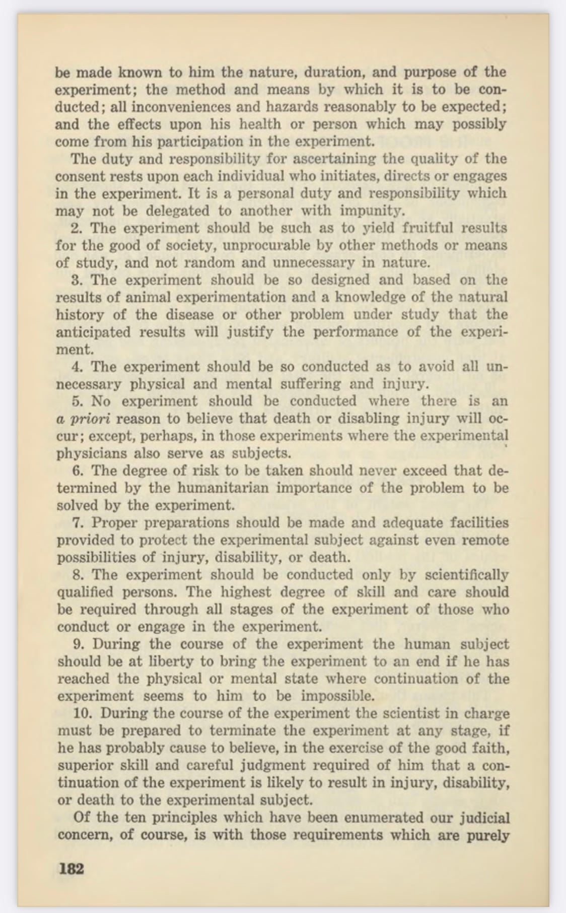 The experiment should be such as to yield fruitful results for the good of society, unprocurable by other methods or means of study, and not random and unnecessary in nature.